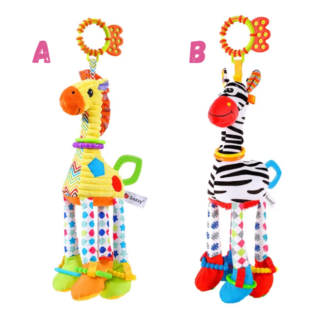 Soft Giraffe and Zebra Plush Handbell Rattles - Infant Development Handle Toys